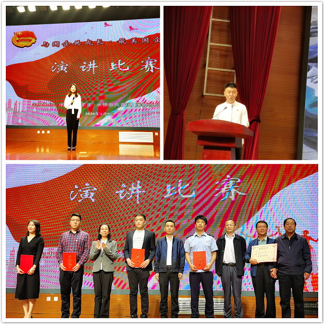 2020年5月9日,集團(tuán)公司選派黨委辦公室、智能停車場公司2名員工參加了由承德市國資委、承德市共青團(tuán)、承德市總工會舉辦的“與國企共成長?最美國企人”演講比賽,并取得了優(yōu)異成績,集團(tuán)公司榮獲優(yōu)秀組織獎。