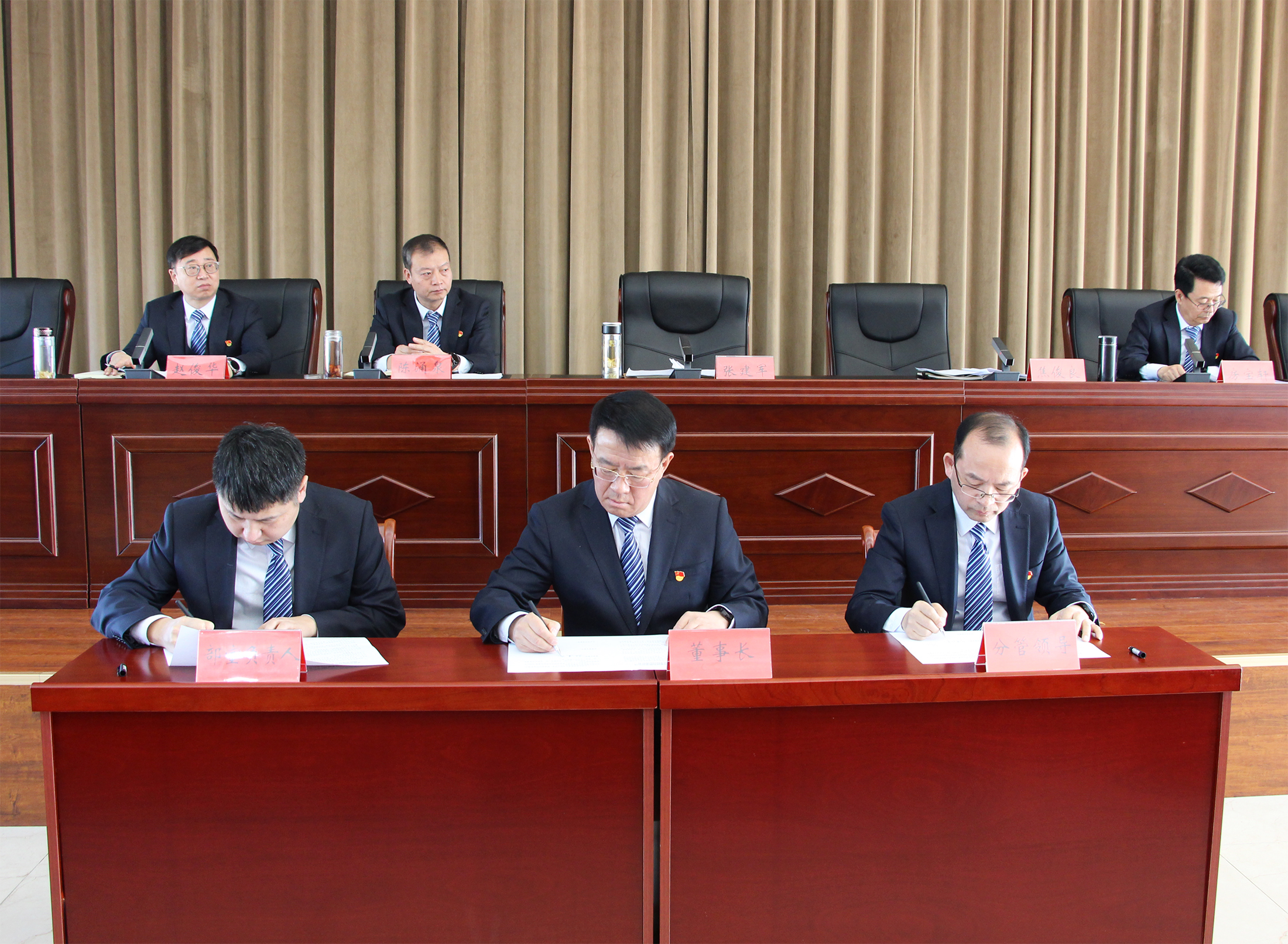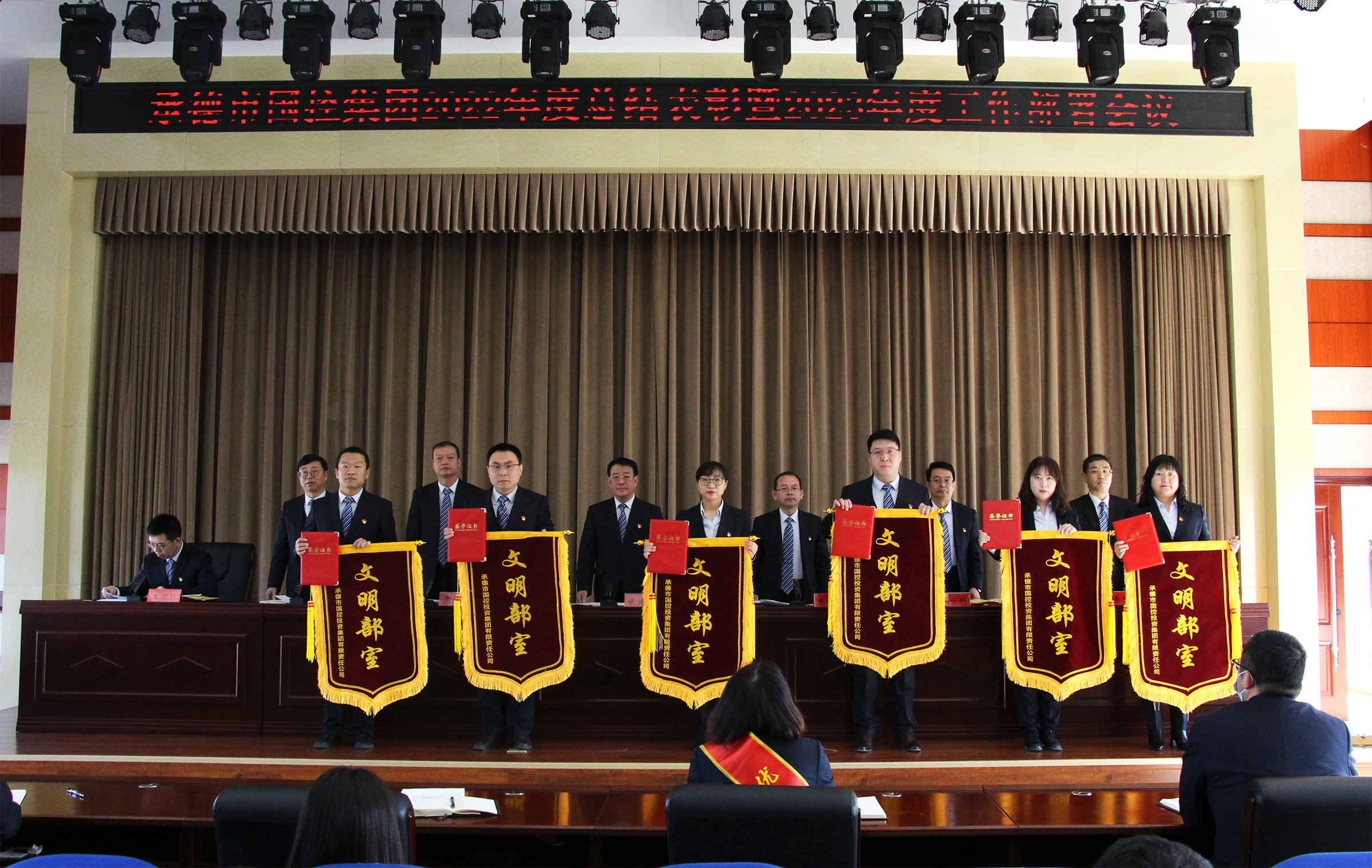 會議宣讀了集團公司2022年度受表彰情況,通報了獲得年度優(yōu)秀的部室、子公司、中層管理人員及員工,與會領導向獲獎集體和個人頒發(fā)了錦旗、榮譽證書。按照2023年度工作部署要求,黨委書記、董事長張建軍代表集團公司逐一與集團公司各部室及實際控制子公司簽訂了《2023年度績效考核目標責任書》,堅持目標導向,強化責任,傳導壓力。